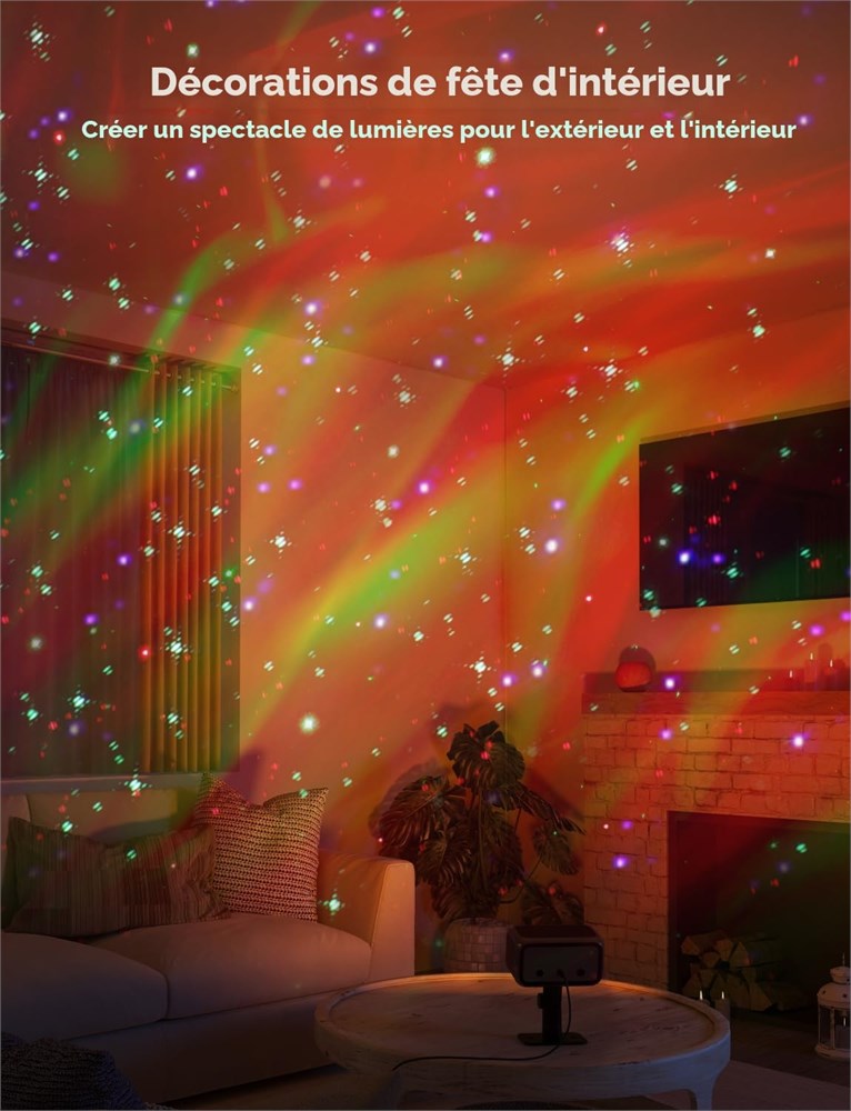 Divers effets d' clairage : essayez d'utiliser des aurores RVB et des motifs RVB pour cr er diff rentes combinaisons d' clairage. Explorez plus de 50 modes de sc ne pr d finis et 3 modes de mouvement via l'application Govee Home, cr ez une excellente atmosph re pour toutes les occasions. Visuels plus lumineux et plus nets : le projecteur d'ext rieur Govee atteint une aurore 100 % plus lumineuse avec des perles Govee haute puissance et offre des motifs clairs gr ce un syst me optique DOE optimis . Projection jusqu' 10 m, id al pour la d coration de vacances. Plus grande zone de couverture : plac e 10 m de la surface de projection, la lumi re Govee fournit un clairage de 500 m . Utilisez le projecteur d'ext rieur Govee pour clairer les murs, les arbres, partout o vous voulez d corer, donnant l'ensemble du patio une lueur de r ve. Durabilit ext rieure : avec un design IP65 et anti-UV, la lumi re ext rieure Govee peut fonctionner de -20 C 60 C. Durable et sans soucis, ce qui rend la d coration de vacances plus facile avec moins de tracas. Remarque : bo tier de contr le IP65, adaptateur IP44. Application intelligente et contr le vocal : contr lez facilement votre projecteur d' toiles avec l'application Govee Home, et utilisez la fonction minuterie pour clairer les f tes de fin d'ann e. Associez votre projecteur ext rieur avec Matter, Alexa et Google Assistant pour un contr le vocal intelligent. Spectacle de lumi re immersive : adapt pour les grandes maisons et les grandes cours, ce projecteur ext rieur peut couvrir toute la fa ade et la cour avant pour cr er un superbe spectacle de lumi re de vacances, faisant de votre maison rapidement le centre d'attention sur le bloc.