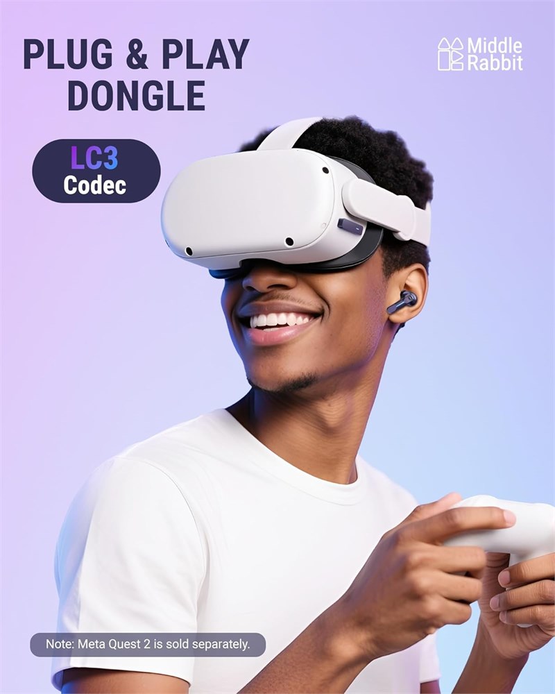 - : Equipped with the latest LC3 codec over 2.4G wireless, SW4 Pro delivers ultra-low 20ms latency, ensuring smooth audio and video sync for competitive VR and console gaming. No more lag when playing FPS, racing, or rhythm games. , , & : Works seamlessly with Meta 3/3s/2, PS5, PS4, Desktop & Laptop PC, Steam Deck, Switch. Note: Xbox not supported. The dongle is truly plug & play just connect and start gaming, no driver needed. - : Use 2.4G dongle for gaming on VR or console while keeping Bluetooth connected to your smartphone. Simply long-press one earbud to switch between devices perfect for taking calls without quitting your game. : Four Built-in HD mics capture your voice with clarity, ensuring smooth team communication during online matches and voice chat. : Play up to 6 hours of gaming or 8 hours of music per charge. The charging case provides 3 extra full recharges, delivering a total of 32+ hours playtime for all-day entertainment. + : Switch between 4 EQ modes: Footstep Boost (FPS), Game Balance (strategy), Music Mode (rhythm/music games), and more. Tailored audio modes give you the edge in every type of gameplay. Plus, use the Middle Rabbit App to customize your own EQ sound profile. : Customize EQ, adjust touch controls, check earbud & case battery levels, and enjoy OTA firmware updates via the Middle Rabbit App, ensuring your earbuds always stay up to date.