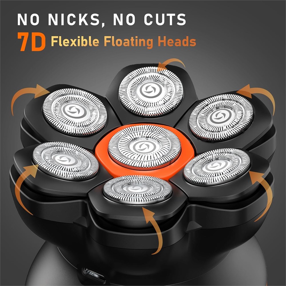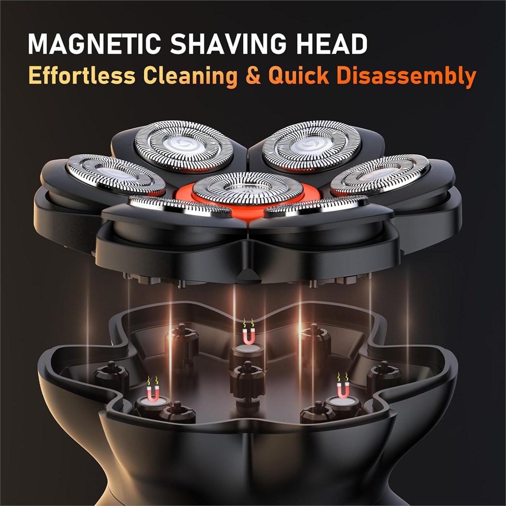 Experience Elite Shaving, Without Breaking the Bank Smooth, Close Finish: The upgraded rotary shaver head provides a close shave, effortlessly gliding along your head contours to achieve a smooth, bald head with a polished finish. Premium large-diameter floating blades ensure a faster, smoother shave for exceptional results. Dual-Speed Settings for a Customized Shave: With two adjustable speed levels, this razor is perfect for all hair types and thicknesses. The first speed is ideal for gentle shaving, offering a smooth, irritation-free experience when shaving light or sparse hair. The second speed delivers fast, efficient shaving for longer hair, ensuring a quick, clean shave without irritation or nicks. Ergonomic Design: The MAXGROOM head razor features an ergonomic, round handle that ensures a secure, comfortable grip for effortless one-handed use. Whether you re shaving wet or dry, the handle allows for easy handling at any angle, providing a smooth, comfortable shaving experience every time. IPX6 Waterproof & Magnetic Detachable Blade System: Engineered for effortless cleaning, this IPX6 waterproof razor features a magnetic detachable blade system for quick, thorough rinsing. Enjoy a confident shave in the shower or on the go, with easy maintenance and hassle-free convenience. Premium Gift Packaging: Delivered in an elegant gift box, it s the ideal present for bald men, combining style and reliability.