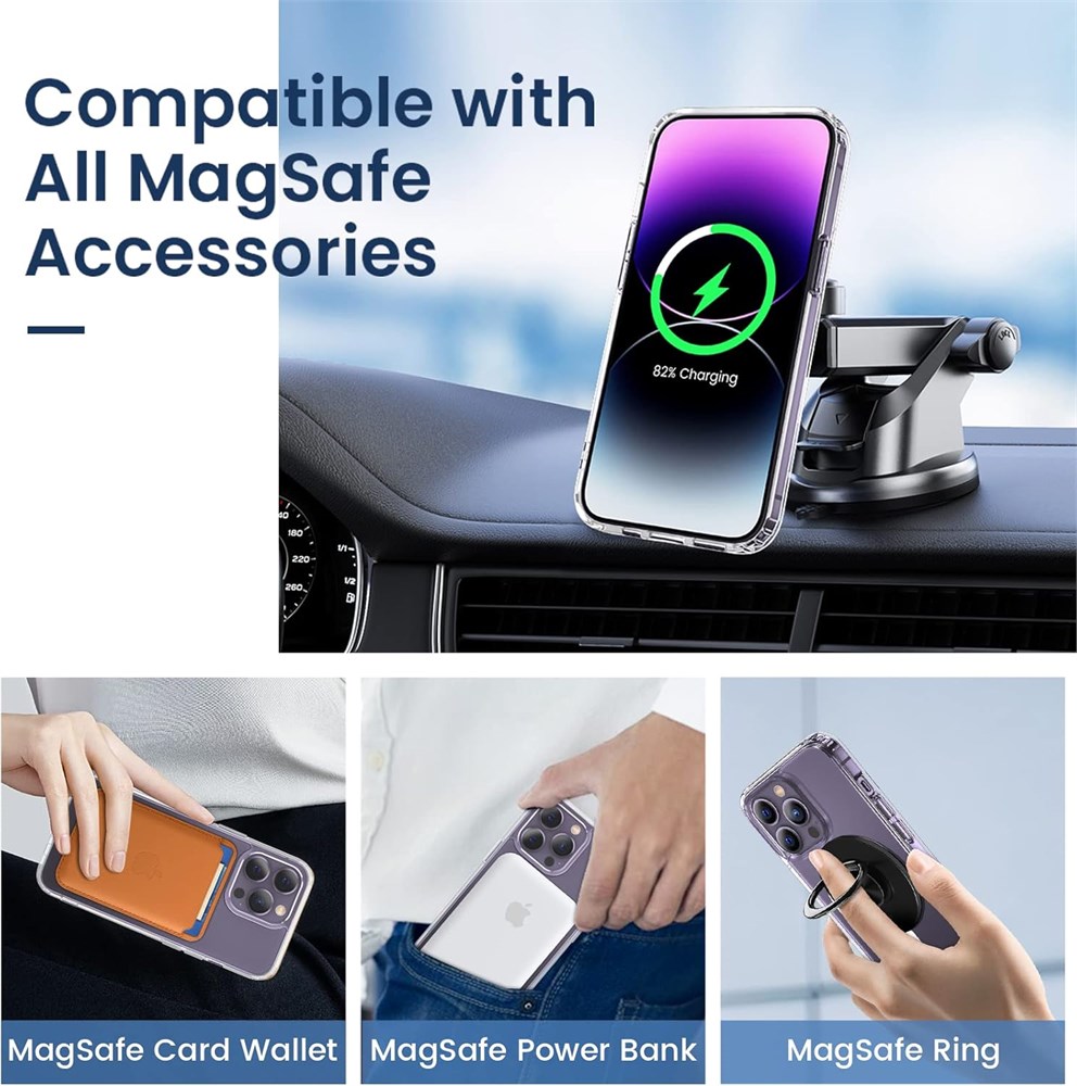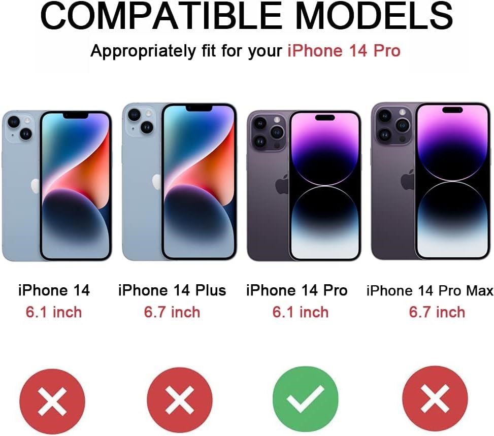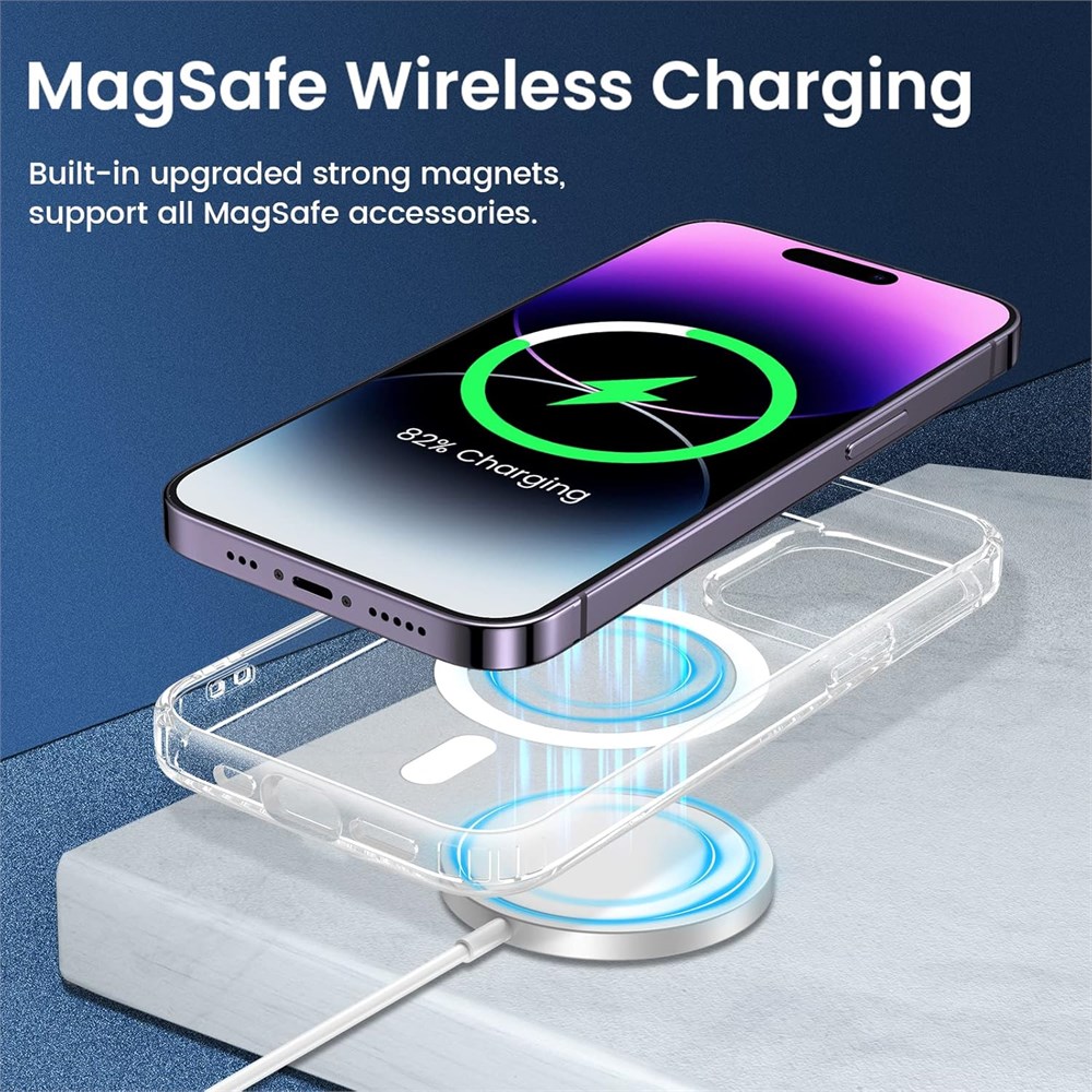 COMPATIBILITY VEGO crystal clear magnetic case ONLY compatible with Apple iPhone 14 Pro 5G 6.1 inches 2022 NEW released. (Notice: NOT fit iPhone 14 /14 Plus /14 Pro Max and other phone models. Please confirm the phone size carefully before buying.) Strong Magnets The iPhone 14 Pro case is compatible with magnetic wireless charger (NOT Included). Built-in 36+2 magnets automatically aligned with wireless charger. It has stronger magnetic adsorption force without signal interference. Drop Protection The combination of clear hard PC + soft TPU frame can provide better drop protection, Ultra-slim cover with raised lips on frame and camera, and reinforced cushion on corners to keep screen and camera lens up off table surface. Yellow Resistant 6 months Anti-yellowing transparent case show off original beauty of your iPhone 14 Pro. The simple and classic design suitable for everyone.