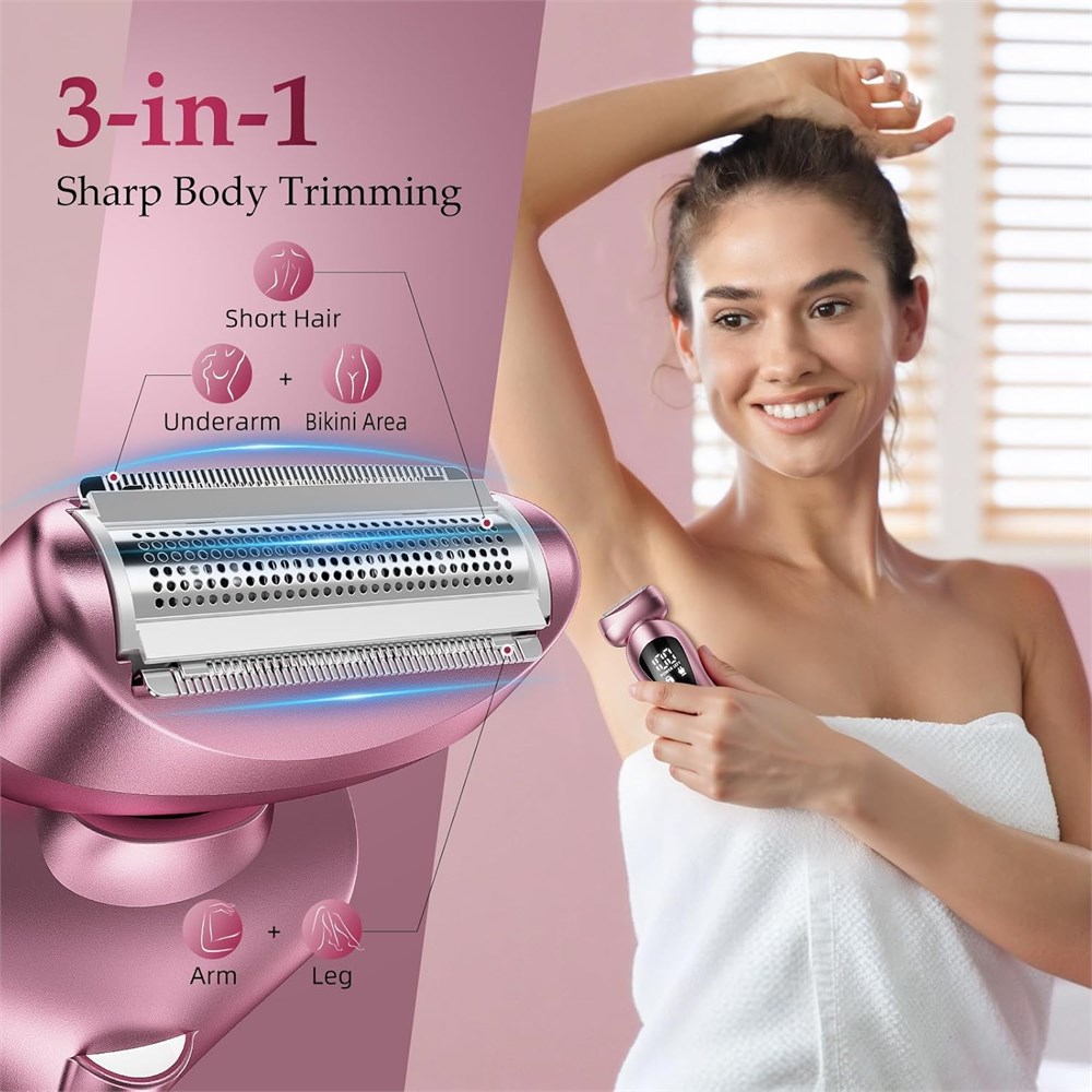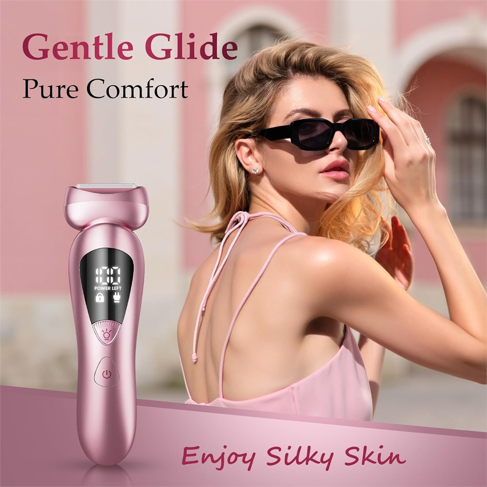 All-in-One Bikini Trimmer: This rategist lady bikini trimmer with two highly effective razor heads for easy shaving of all body areas. The 3-in-1 body razor head is ideal for arms/legs/Underarms/bikini line - any length, anywhere!The facial razor head precisely shaver hair on the chin/lip/cheeks. Professional & Efficient & Smooth Shaving: Our hypoallergenic bikini shaver designed to be gentle on even the most sensitive skin. This trimmer ensures a precise, pain-free hair removal process - eliminating irritation, skin pulling, cuts, discomfort. Say goodbye to goose bumps caused by hair removal for good. Just silky - skin bliss! Pain-free & Hypoallergenic Razor: Our electric razors for women crafted with hypoallergenic sharp stainless steel blades, delivers a shave free from pain and irritation. The precision blades move seamlessly along bikini area and face, blocks ingrowns, offering a comfortable and efficient hair removal solution tailored for sensitive skin. 150Min Long Runtime & 1H Fast Charging: Our rechargeable bikini trimmer for women includes charging base for hassle-free power. Up to 40-day battery life on daily use! LED display shows battery life/travel lock. USB-C charges anywhere: car, power bank, laptop. Your perfect travel essential, Zero Wait, Max Grooming! For Her - Or You: Beauty hits different with this elegant, practical grooming kit. Premium, skin-safe, travel-friendly tools make it a thoughtful gift (Christmas, birthdays). No flimsy extras just smooth skin and timeless self-love. Fashion Essential: More than electric razors for women, this stylish essential is crafted for the modern woman. Fully waterproof for wet or dry, it features a built-in LED light to reveal finest hairs.The ergonomic delivers salon-smooth results effortlessly your ultimate confidence booster for 24/7 radiance.Your Secret Beauty Weapon!