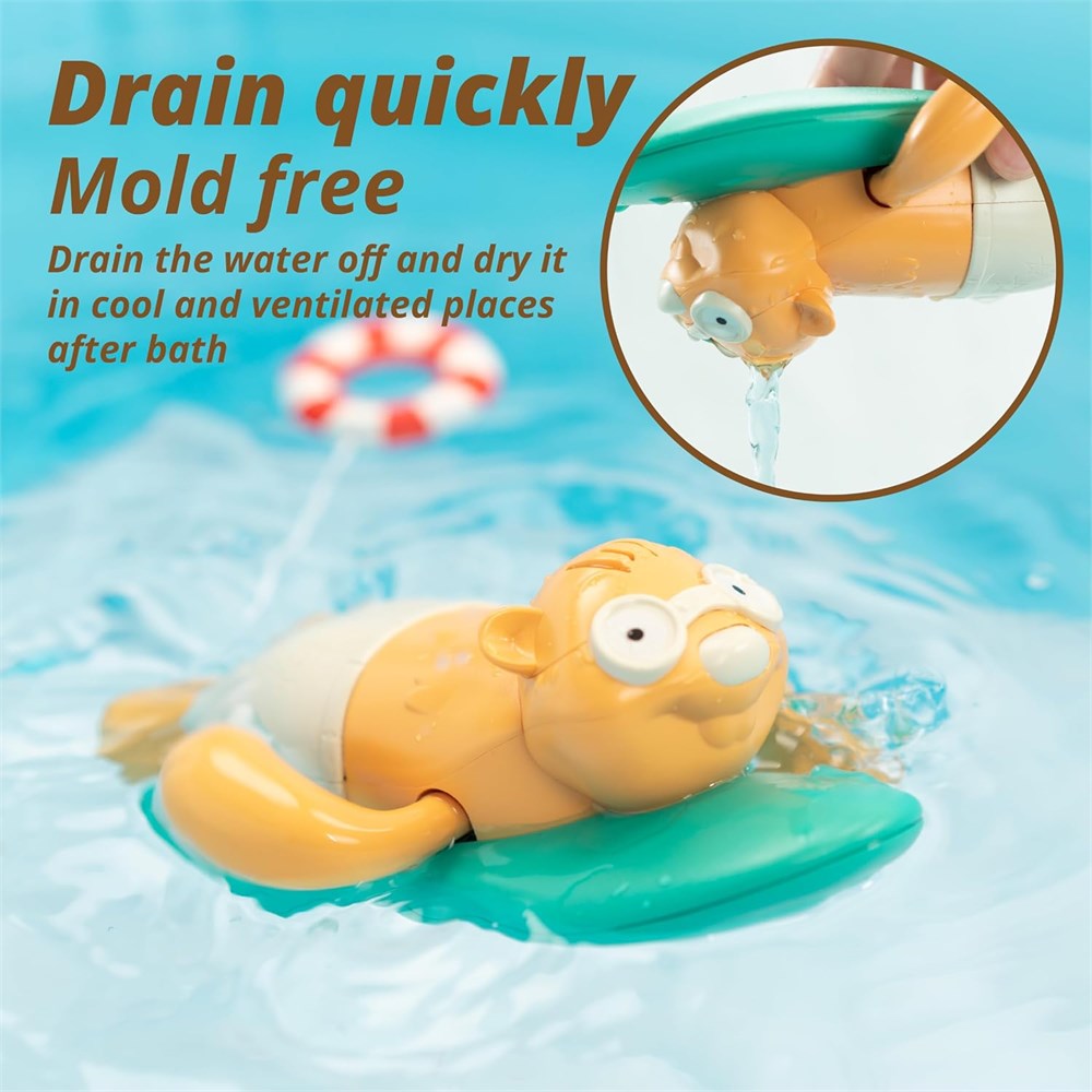 Wind-up! See beaver surfing around you. It runs about 20s if pull the swim ring rope to the end. Normally, Kids 3+ could pull on her own. Made from ABS, non-toxic, durable. Perfect for kid's Christmas gifts, birthday presents. Help kids understand knowledge of physical buoyancy and develop their hand-eye coordination, dexterity, motor skill. Circular arc design and smooth edges. Recommended for ages 3 and up.