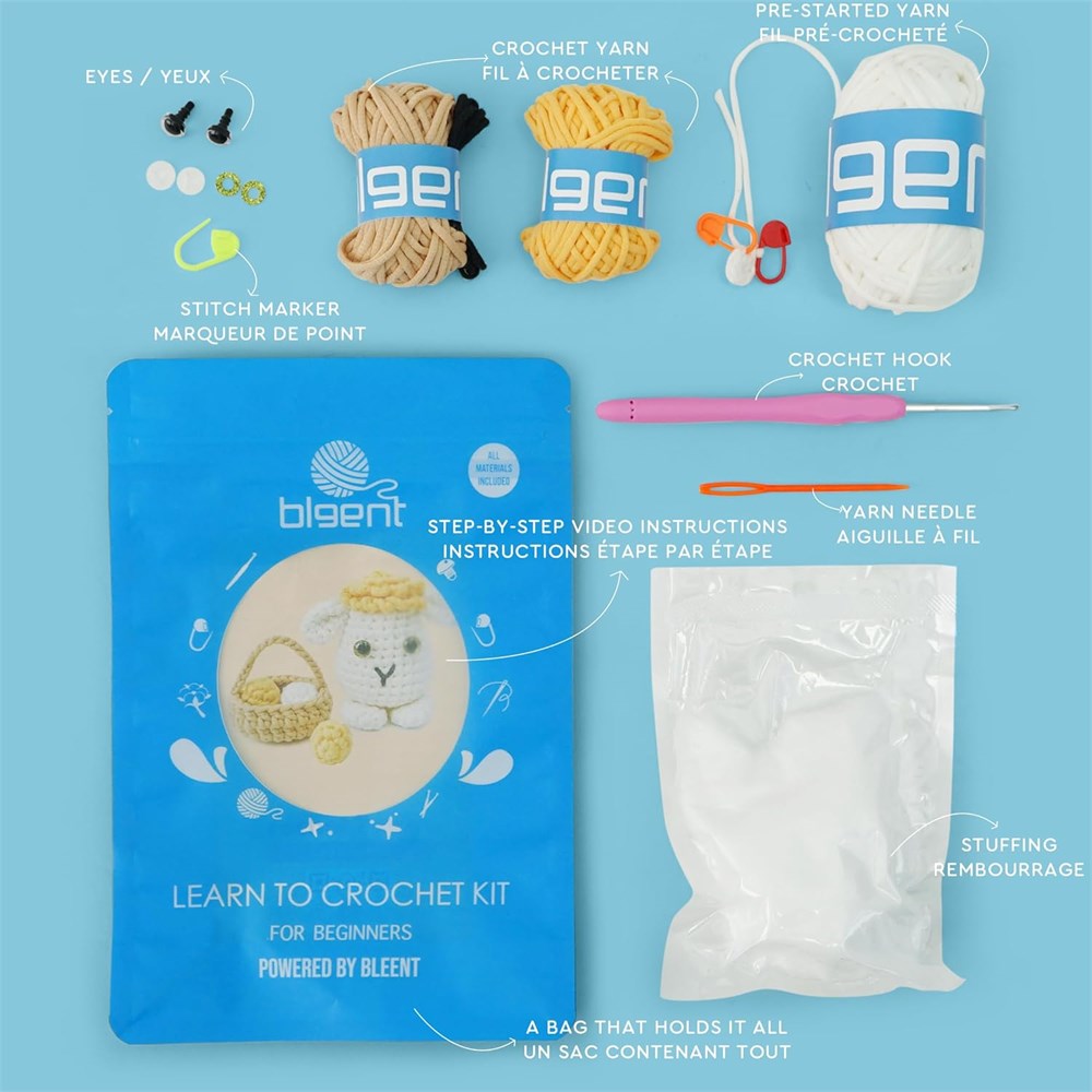 CROCHET KIT FOR COMPLETE BEGINNERS: The Easter Lamb crochet kit is an ideal choice for absolute beginners; Our user-friendly, step-by-step video tutorial makes learning a breeze. ALL MATERIALS INCLUDED: Besides the Easy Peasy Yarn and user-friendly video tutorials, our kits come complete with all necessary tools for your crochet journey. The Easter Lamb kit includes yarn, eyes, a yarn needle, a crochet hook, stuffing, and a convenient bag to hold it all together. EASY-TO-FOLLOW VIDEO TUTORIALS: Comprehensive instructions and detailed step-by-step video tutorials guide you through crafting an adorable Easter Lamb. Our instructions are meticulous and beginner-friendly. HIGH QUALITY YARN: Our in-house Yarn is exclusively crafted for beginners and exclusively found at Bleent. It's designed for ease of crocheting and provides excellent stitch visibility throughout your project. A GIFT FOR ANY OCCASION: This DIY crochet kit makes a considerate gift for a crocheting enthusiast friend. Enhance your focus and unleash creativity. Ideal for any occasion, including birthdays, Easter, Mother's Day, Thanksgiving, or Christmas.