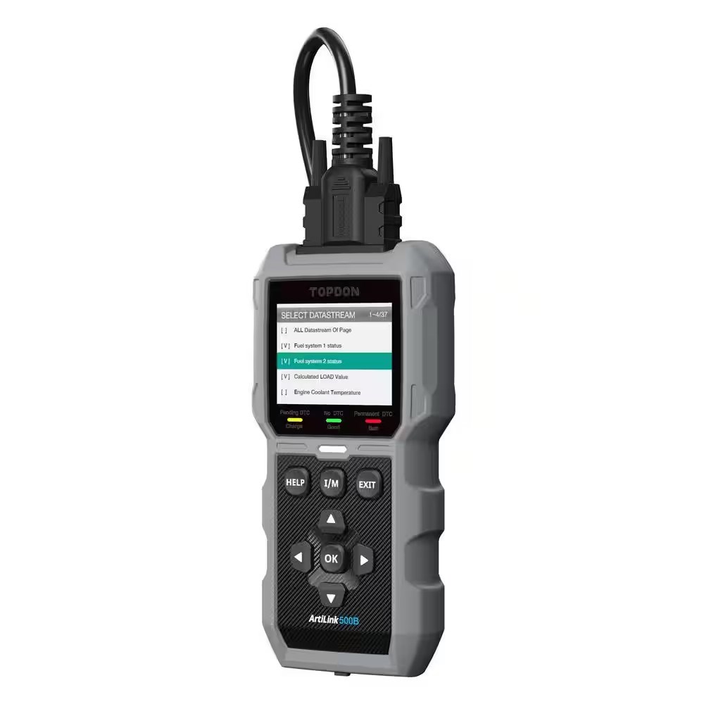 The Artilink500B is a 2-in-1 OBDII Scanner and Battery Tester. It includes complete OBDII functionalities, able to check engine light(CEL) codes and clear them. It shows live PCM data to identify which parameter is wrong. Other common functions it offers include Freeze frames data, I/M Readiness Status(emissions), Live Sensor Data, VIN, CIN, CVN, and DTC Lookup. Offering expanded capabilities, the ArtiLink500B can accurately measure the battery's actual cold start current capacity, state of health, and more.. Features: Portable. General Part Type: Diagnostic Tools. Number of Pieces Included: 1. Returnable: 90-Day. Shop Equipment Product Type: Diagnostic Scanner. Product Depth (in.): 1.34 in. Product Height (in.): 1.34 in. Product Width (in.): 3.74 in. Shop Equipment Product Type: Diagnostic Scanner. General Part Type: Diagnostic Tools.