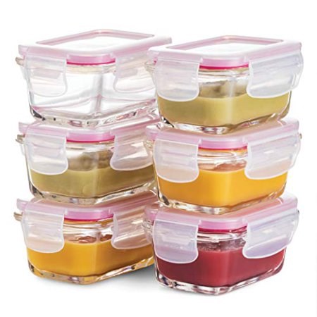 Superior Glass Baby Food Storage Containers - 6 Pack - 5 Oz Containers with Airtight BPA-Free Locking Lids - Baby Food containers - Microwave & Dishwasher Safe - Small Containers for Snacks Dips etc.