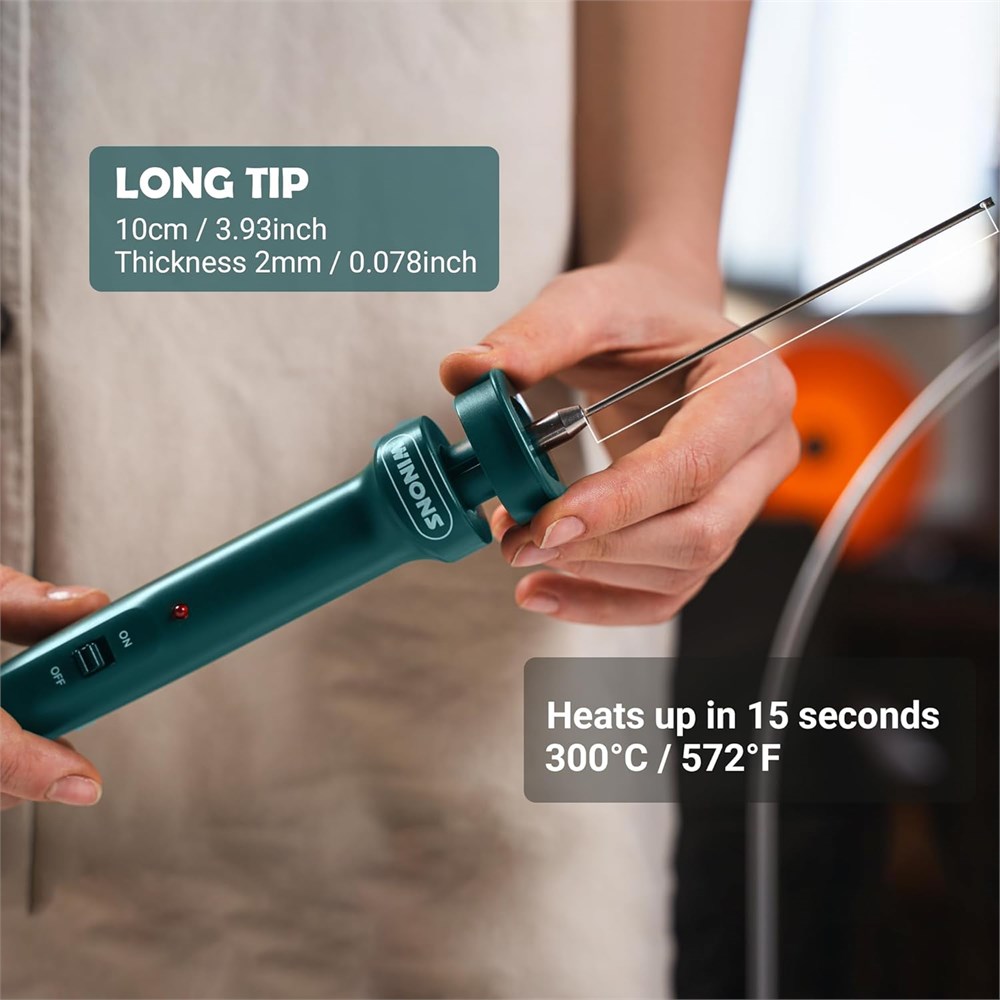 Our advantages: Maximum 350 C Temperature, Ergonomic & User-Friendly Design - Lightweight at 1.2 lbs, our hot knife cutter makes it easy to handle for extended periods. Package Includes: 1x Hot Cutter Body, 1x U-Type Hot Wire Tip - 7 inch(18cm), 1x 4 inch (10cm) Long Tip, 1x 2 inch (5cm) Engraving Tip, 1x 40 inch (10m) Replacement Wire, 1x 10W Power Supply, 1x Support Frame, 1x Scraper, User Manual. Versatile use: Precise & Clean Cuts, This hot knife foam cutter is designed for smooth cuts through foam materials like EPS, EPE, EVA, EPP, XPS, and Sponge, reducing mess and wastage. Check the Density Table for cutting materials in our User Manual for more detailed information. Rapid heating: This foam cutting tool operates on 10W power, providing adequate power for various foam cutting tasks without compromise on performance. The hot wire tip heats up in 5 seconds up to 250 C/482 F, Holing tip heats up in 30 seconds up to 300 C/572 F, and the Engraving tip heats up in 30 seconds up to 350 C/662 F. Enhanced safety features: Crafted for endless projects with long-lasting materials. Includes thermal protection and a convenient safety switch for secure, reliable, and safe operation. The hot wire tip heats up in 5 seconds up to 171-196 C / 229-384 F, Holing tip heats up in 30 seconds up to 223- 262 C / 433-503 F, Engraving tip heats up in 30 seconds up to 472-537 C / 881-998 F." User instructions: For optimal performance, limit continuous operation to 40 minutes. Handle the tool with care and avoid excessive pressure while cutting. Clean the hot tool thoroughly after each use to maintain performance.