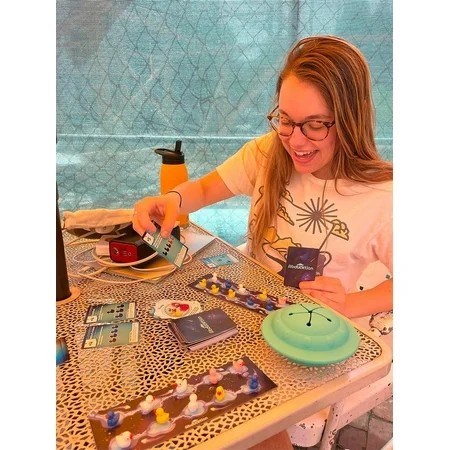 ABDUCKTION: A weirdly strategic duck kidnapping game, 15-minutes of light strategy of ducks, a UFO, and mind-bending, shape-finding logic! WHAT'S INCLUDED: 80 adorable plastic ducks, 3D flexible UFO, 4 player boards, Action Cards deck, Formation Cards deck. 2-4 PLAYERS: Equally competitive between two players or among a group of four, 15 to 20-minute playtime. AGE RANGE: Abducktion is a surprisingly strategic game for grownups (and smart kids), recommended for ages 12+. EASY TO PLAY: Learn in two minutes. Games take just 15-20 minutes to play, but are still strategic enough to take lots of skill make winning feel really, really good.