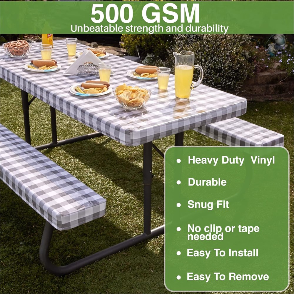 A Must for Outdoor Enthusiasts: Whether you re a fan of the occasional family picnic or you simply want to add a modern, functional touch to your back yard table, the Hudson Comfort camping tablecloth set is the perfect choice! Durable Non-Tear Fabric: This outdoor tablecloth set is made employing premium quality, highly durable materials, a combination of 500GSM heavy duty vinyl and smooth finishes, designed to withstand the test of time. Waterproof and Windproof: Unlike similar products on the market, this camping picnic table cover rectangle is waterproof, spill-proof and windproof, being easy to put on without requiring extra clips or tape. Choose Your Favorite: Our vinyl tablecloth is available in 2 different sizes and 4 colors, depending on your needs and preferences. Choose from red, blue, green, gray and 72 x 30 , 96 x 30 , and add a lovely note to your picnic decor! Includes Bench Covers: The Hudson Comfort picnic accessories also include 2 convenient bench tops, measuring 72 x 12 or 96 x 12 , being compatible with the standard sized picnic benches. Order this set for yourself or as a lovely housewarming gift idea for a friend or loved one, and you can be sure it will be appreciated! Each set includes a convenient carrying case, at no extra charge!