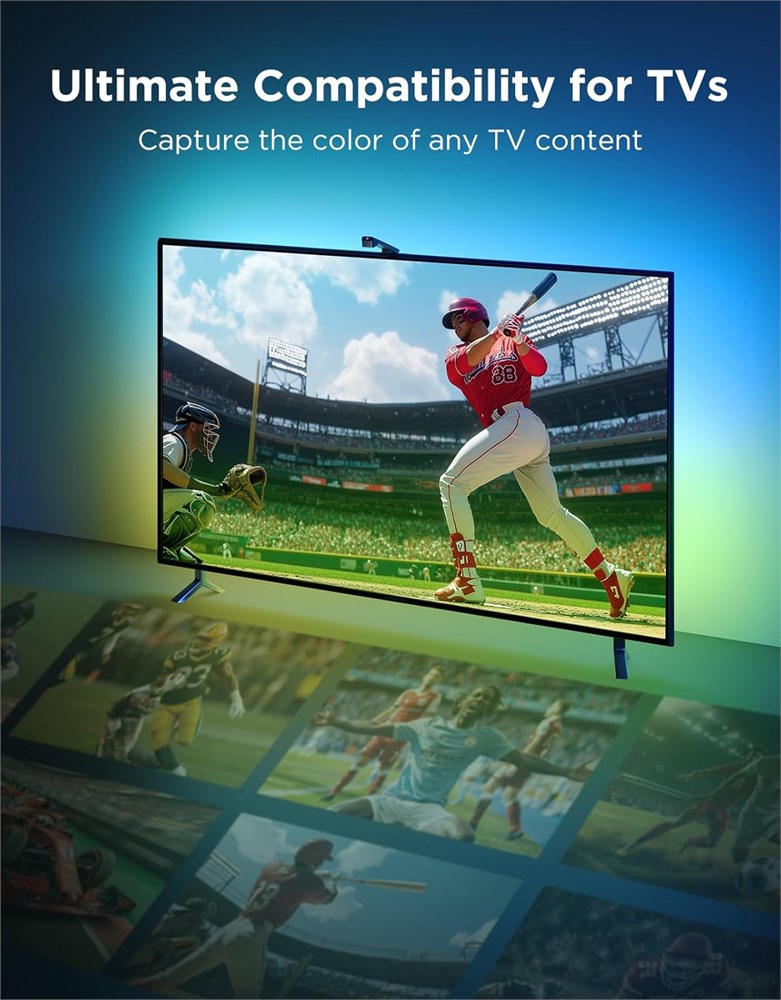 Upgraded Govee Envisual Technology: The upgraded chip of Govee tv backlight provides stronger performance with a fish-eye correction function, expanding the effective range to provide more accurate color-matching along the edges. 4-in-1 Lamp Bead: RGBICW tv led backlight strip add an extra warm white chip into the color mix, a purer white tone and the improved pixel density make the lighting effect more vivid and natural, which helps enhance immersive movie watching and gaming. Gravitational hanging design for Camera: Simplify installation and adapt for ultra-thin TVs. You can use the adhesive to stabilize govee tv backlight without wobble, when installing the camera. Govee DreamView Syncing: The function realized the linkage of Govee lights. Add up to 7 sub-devices to sync the lighting effects of the 3 Lite, create a 360 immersive view experience, and enrich the light mapping effects within the home environment. Full Compatibility for Any TV Content: The 3 Lite can instantly capture the color of any TV screen for color matching without compatibility issues. Use the Govee tv backlight while streaming content, watching online videos, gaming, etc. Smart Activation: Manage your tv backlight with the Govee Home APP or simple voice commands via Alexa and Google Assistant. Choose from black bars elimination, blank screen detection, scene modes and more with a simple tap on the App.