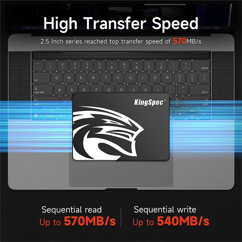 Speed Up Your Old Computer The KingSpec 2.5 sata ssd sequential read/write speeds up to 550MB/s & 500MB/s, Fast to boot, load and transfer data. Up to 5x faster than HHD, making your computer run faster and smoother! Reliability & Stability The 2.5 inch sata ssd adopts 3D NAND TLC, Mean time between failures (MTBF) up to 1 million hours. Supports wear leveling, garbage collection, over-provisioning, native command queuing, TRIM, S.M.A.R.T etc. Longer life, more reliable data storage and faster resource allocation for your usage needs. Various Storage Capacity Max capacity is up to 4TB (128GB/256GB/512GB/1TB/2TB/4TB), that gives you enough storage space for applications, HD videos, photos and other files. You can also expand the capacity of your computer with a Sata SSD expansion cable. Wide Compatibility The KingSpec P3 internal SSD drive is compatible with desktops, laptops, all-in-one PCs, supporting various operating systems like Windows, Linux, and Mac OS, meeting the needs of diverse devices.